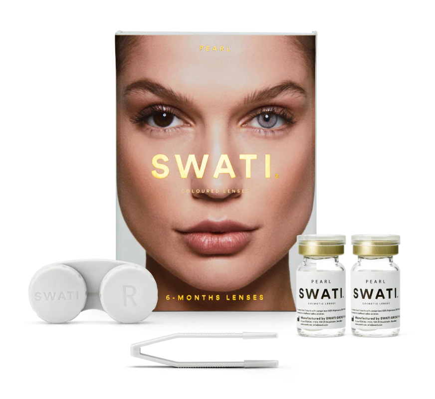 Swati Pearl Grey Colored Contact Lenses feature a light grey tint with a subtle blue undertone, designed to brighten your eyes in a stylish and natural way. A slight limbal ring surrounds the iris, accentuating the depth and definition of your eyes. This versatile Swati color lens can change the shade of your eyes by up to 70-80%, depending on your initial iris color, providing a naturally luminous appearance.
